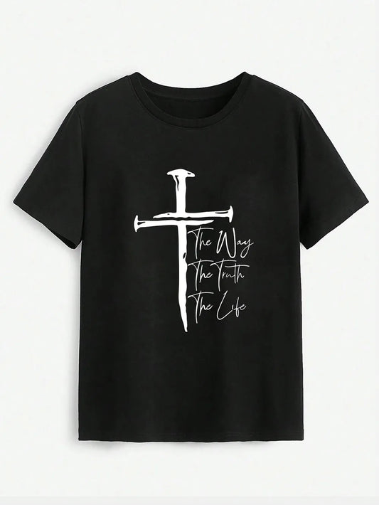 Letter Graphic Round Neck Short Sleeve T-Shirt