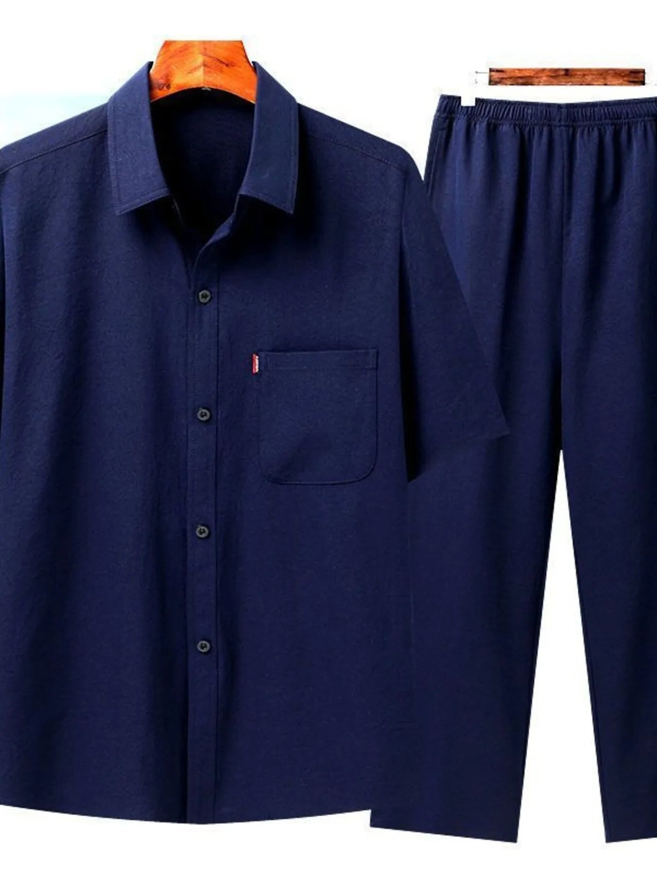 Men's Full Size Button Up Short Sleeve Shirt and Pants Set Plus Size