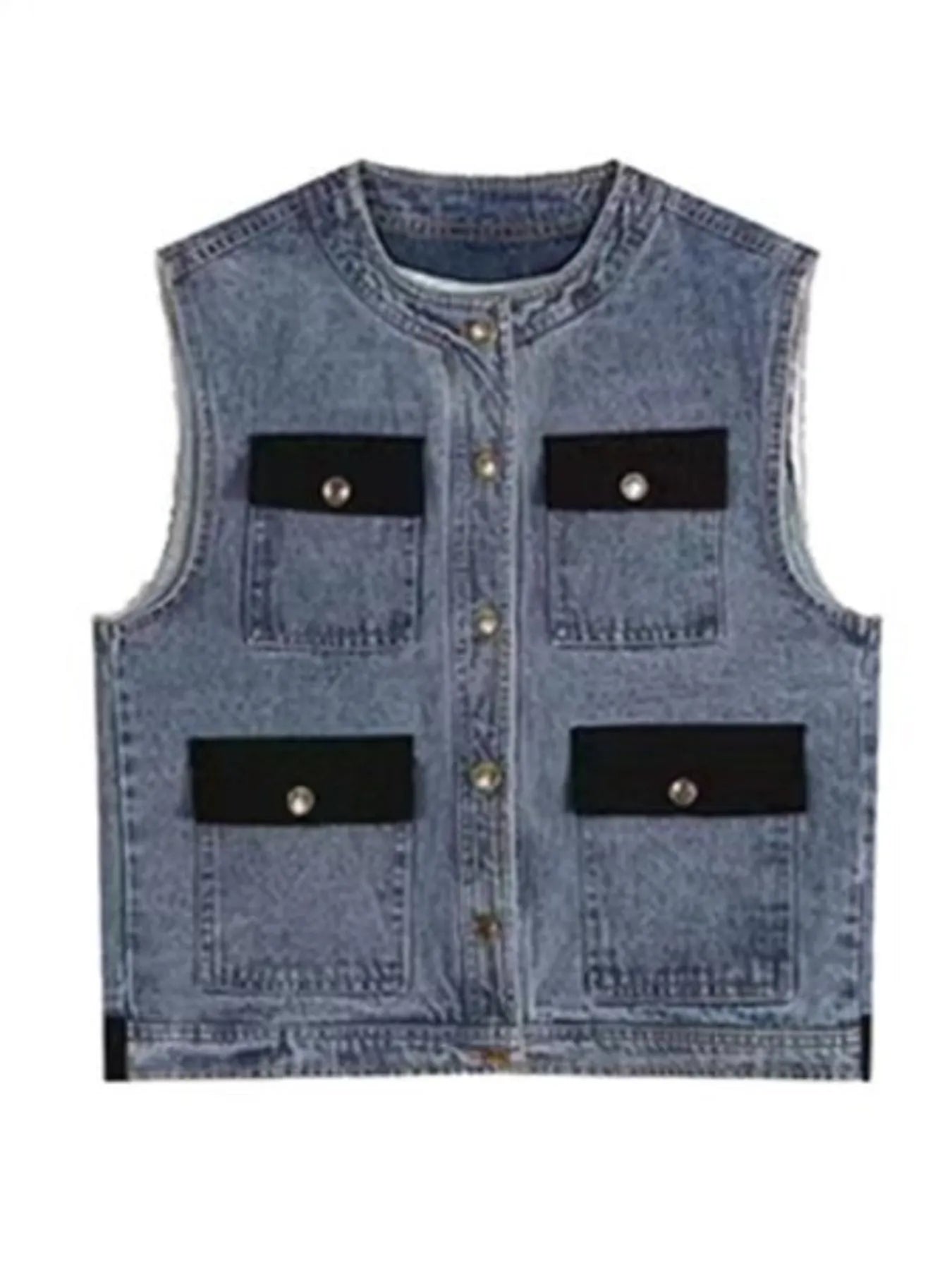 Men's Plus Size Button Up Vest and Pants Denim Set