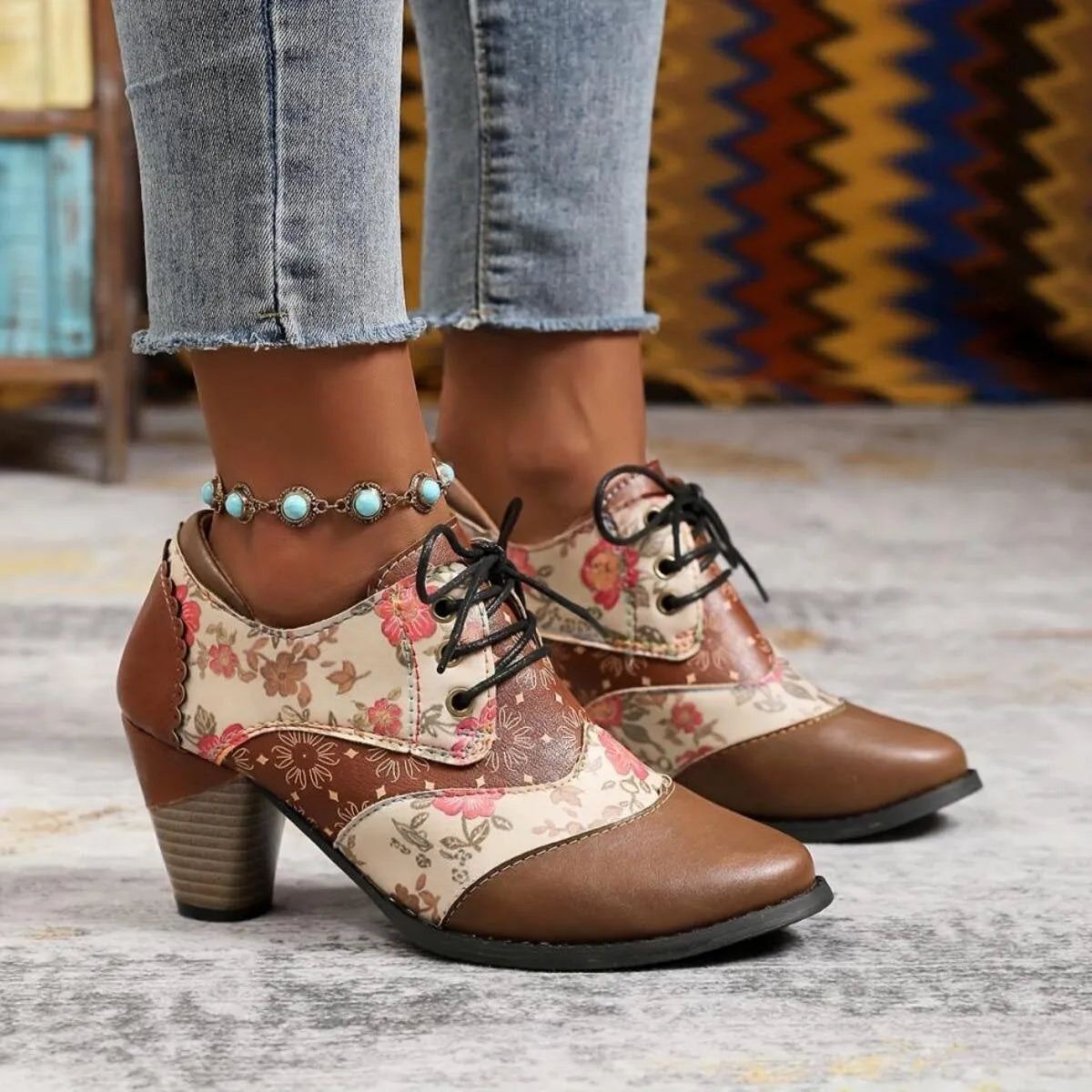 - Heel height:Mid heels