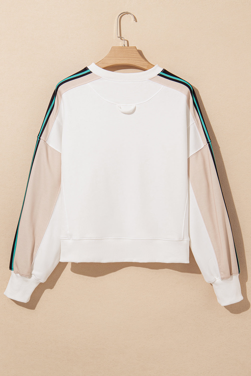 White Striped Color Block Exposed Seam Loose Active Sweatshirt